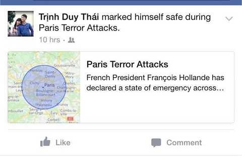 Ngay sau khi vụ khủng bố diễn ra, cộng đồng mạng trên thế giới đã đồng loạt đăng tải hình ảnh đại diện với nội dung chia sẻ với người dân Paris về cuộc tấn công thảm khốc này.