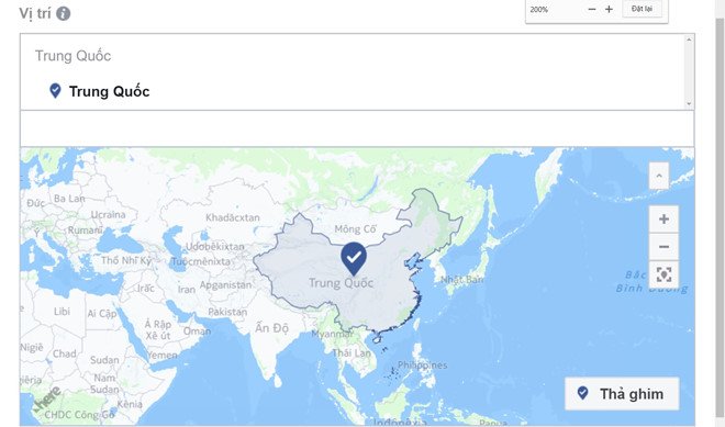 Cụ thể, theo các group chuyên về marketing ở Việt Nam, khi nhập tên Trung Quốc vào đối tượng chạy quảng cáo, facebook đã khoanh vùng và hiển thị vị trí lãnh thổ quốc gia này theo màu sắc. Tuy nhiên, hai quần đảo Hoàng Sa và Trường Sa của Việt Nam hiển thị trùng màu với các phần lãnh thổ còn lại của Trung Quốc là màu xanh, theo Zing.