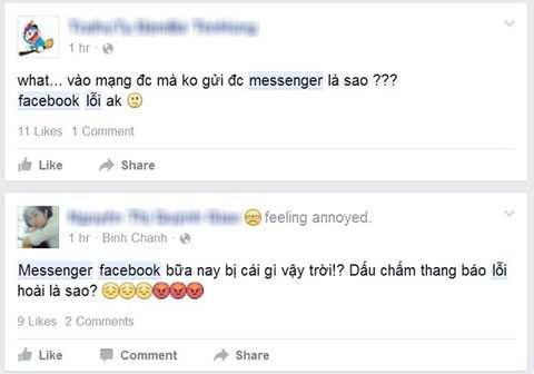 Nhiều người dùng Việt cho biết, họ không thể gửi hoặc nhận tin nhắn từ ứng dụng Messenger của Facebook vào đầu giờ chiều nay.
