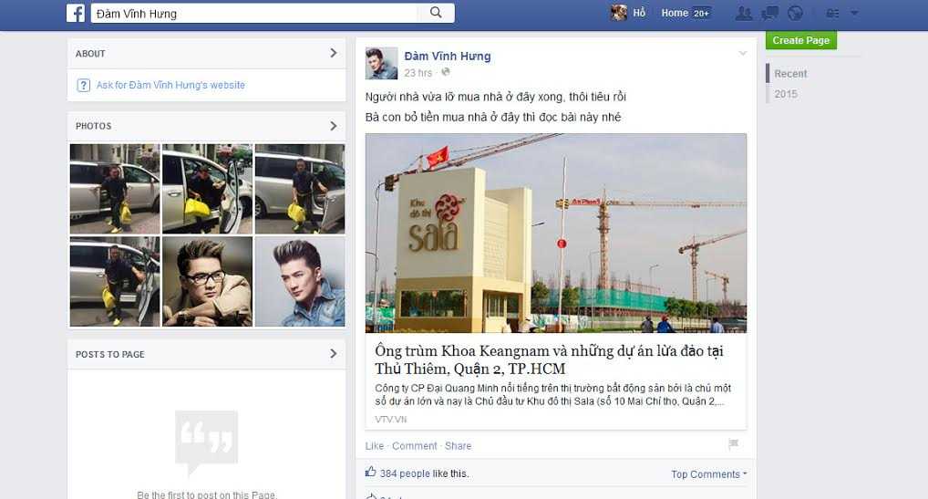 (VTC News) – Người quản lý của ca sĩ Đàm Vĩnh Hưng và nghệ sĩ Hoài Linh đã chính thức xác nhận facebook của những nhân vật này đã bị mạo danh để đưa thông tin bịa đặt về dự án Khu đô thị Sala của Công ty Đại Quang Minh.