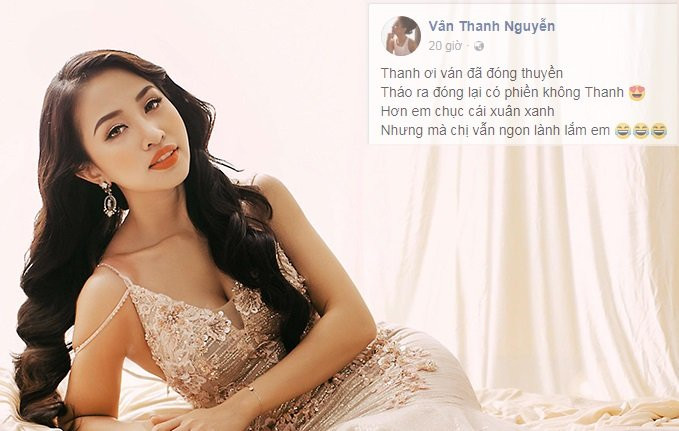 Không lâu sau đó, người đẹp phải lên tiếng giải thích, trấn an các fan của hậu vệ U23 Việt Nam. "Các bạn fan cuồng của Văn Thanh thân mến. Mình biết là mình xinh và làm thơ hay. Mình chỉ trêu một tí cho vui thôi chứ không có ý cướp người yêu của ai cả. Vậy nên các bạn đừng quá khích và nhân danh người yêu của Thanh, khủng bố mình nữa. Căng thôi đừng căng quá mất hay. Hòa chung với không khí tưng bừng sôi động của cả nước, tất cả chỉ là đùa vui động viên các em trước thềm chung kết, vậy thôi. Bình tĩnh và vui vẻ nhé".