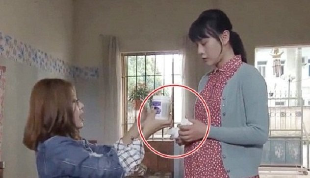 Lát sau, lỗi vẫn là về hộp sữa. Trong phân cảnh chị Lan (Thanh Hương) mua hẳn 3 loại để bồi bổ cho Quỳnh trước khi về quê ăn Tết. "Bà chị chu đáo" còn căn dặn: "Đây là sữa dành cho bà bầu, ngày phải uống ít nhất 2 cốc thì mới tốt cho sức khỏe, sau này mới đủ sữa cho con bú". Thế nhưng, sự thật đây là hộp bột tăng cân và chiều cao dành cho… bé từ 1 tháng tuổi.