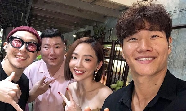 Trưa 31/8, Tóc Tiên hào hứng khoe ảnh chụp cùng bộ đôi đình đám của chương trình Running Man - Kim Jong Kook và Haha. Nữ ca sĩ dí dỏm chia sẻ, ấn tượng mạnh nhất của cô khi được gặp Haha và Kim Jong Kook ngoài đời là cả 2 có vóc người khá cao to.