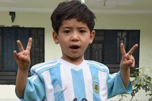 Cậu bé Murtaza đáng yêu trong chiếc áo được thần tượng Messi ký tặng