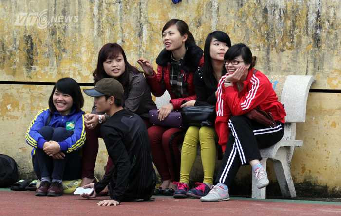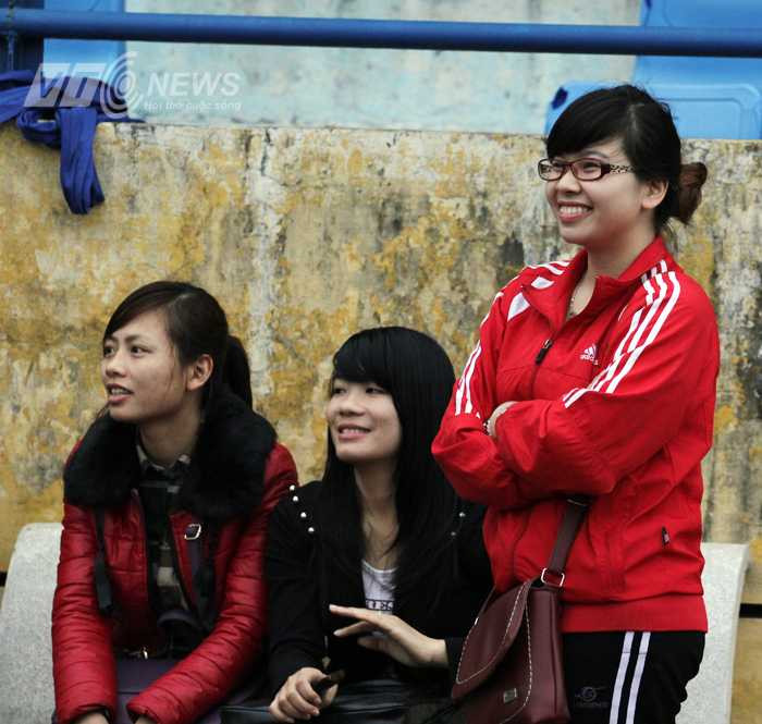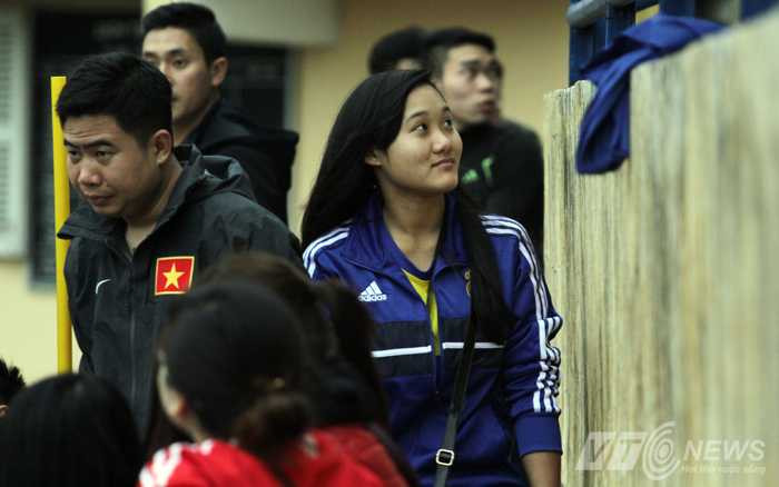 Trước đó, một số fan nữ đã đến sân từ rất sớm. Họ ngồi chờ đợi sự xuất hiện của các tuyển thủ để xin chữ ký.