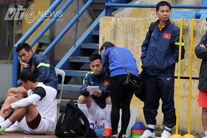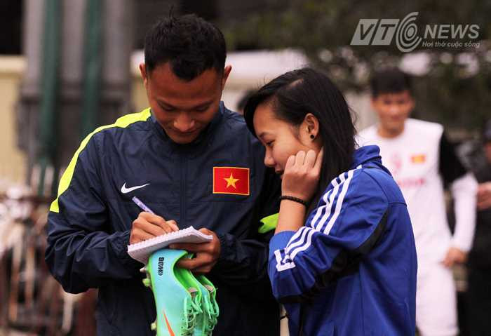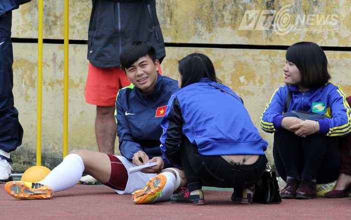 Do Công Vinh bận khởi động nên việc tiếp xúc với tiền đạo này để xin chữ ký không tiện.