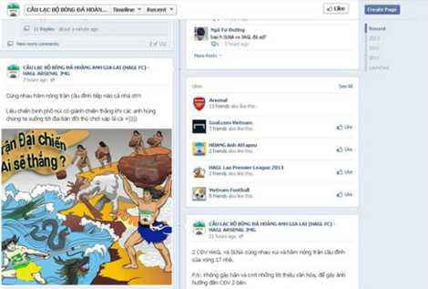Những hình ảnh có tính chất châm biếm quá mức trên fanpage của HAGL đã châm ngòi cho một cuộc khẩu chiến dữ dội trên facebook với fan SLNA.