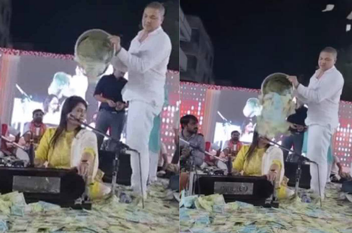Nữ ca sĩ dân ca Gujarati Urvashi Radadiya đã chia sẻ một đoạn video mà trong đó cô đang được “tắm” bằng tiền mặt trong một buổi biểu diễn. Trong video, Urvashi đang biểu diễn trên sân khấu với các nhạc sĩ khác thì bất ngờ, một người đàn ông tiến đến từ phía sau và trút một xô tiền mặt từ đầu cô đổ xuống. Xung quanh khu vực cô hát cũng đã được rải đầy tiền mặt.