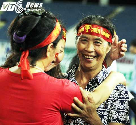 | Mẹ Công Phượng rạng rỡ khi xem con thi đấu ở Mỹ Đình (Ảnh: Thành Phạm) |