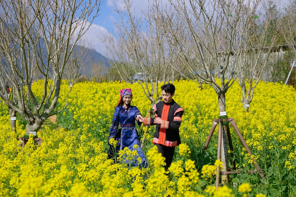 Những thảm hoa cải vàng rực trở thành điểm nhấn ấn tượng giữa bức tranh thiên nhiên Tây Bắc.