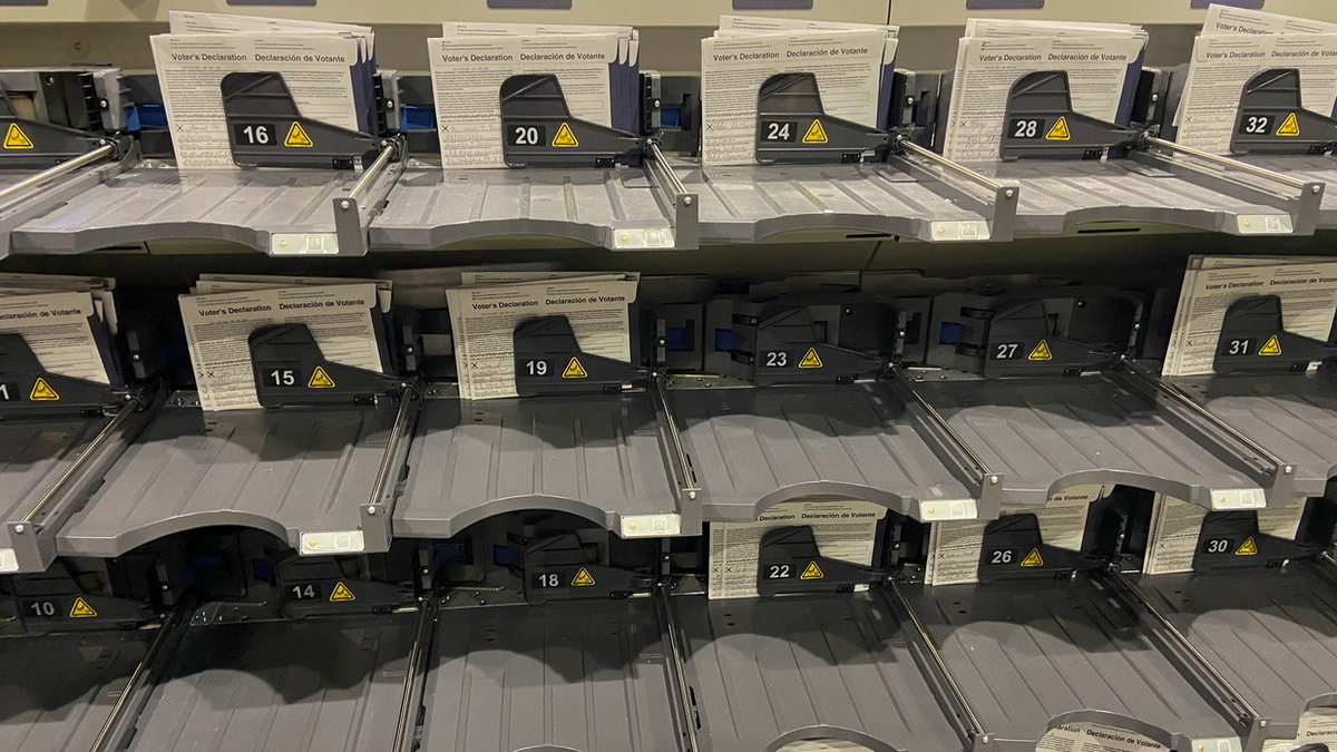 Một máy phân loại các lá phiếu theo địa chỉ và khu vực bỏ phiếu, được nhìn thấy trước cuộc bầu cử tại Trung tâm Hội nghị Philadelphia ở Pennsylvania. (Ảnh: Reuters)