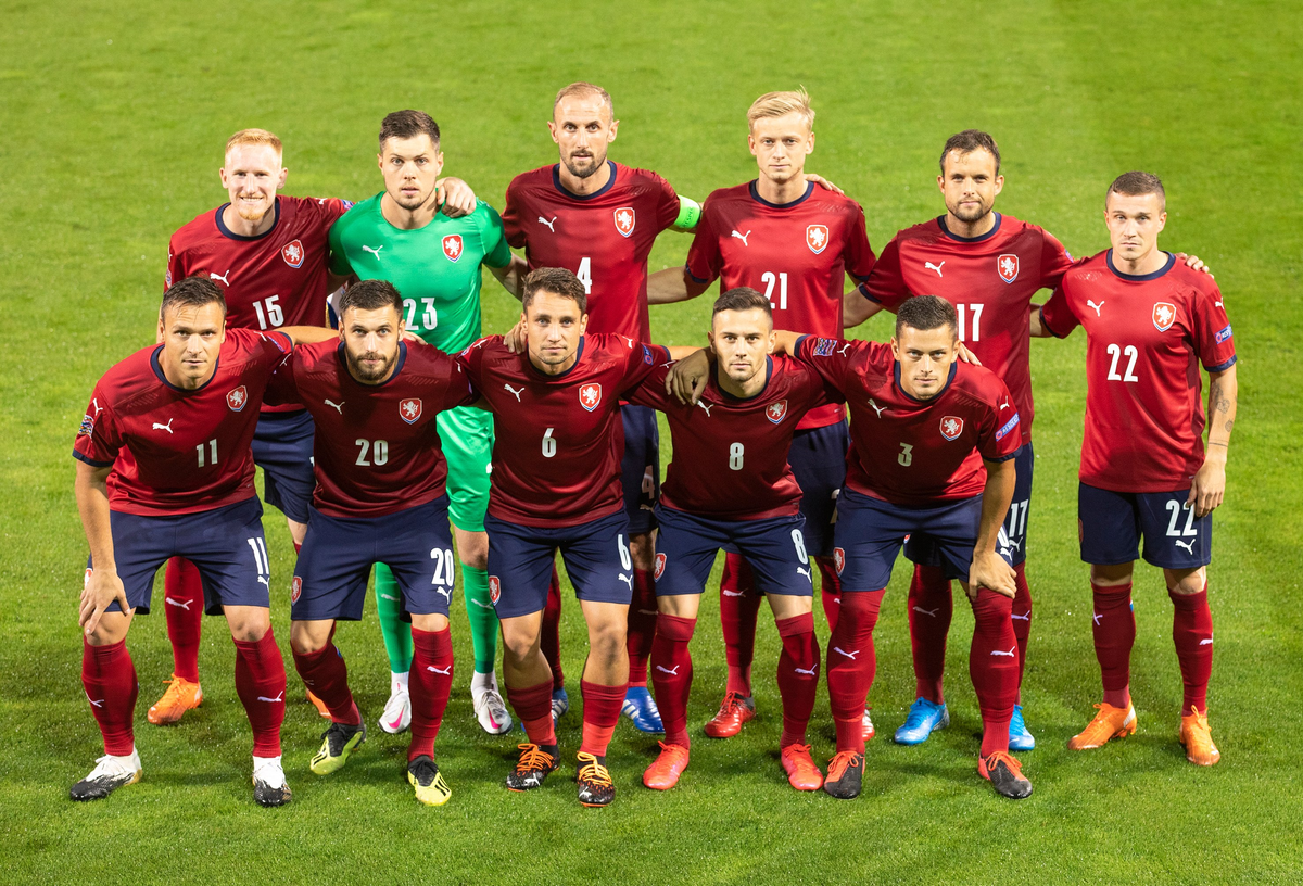 Đội hình ra sân của đội tuyển Cộng Hòa Séc. Thủ thành Ales Mandous là người bắt chính.