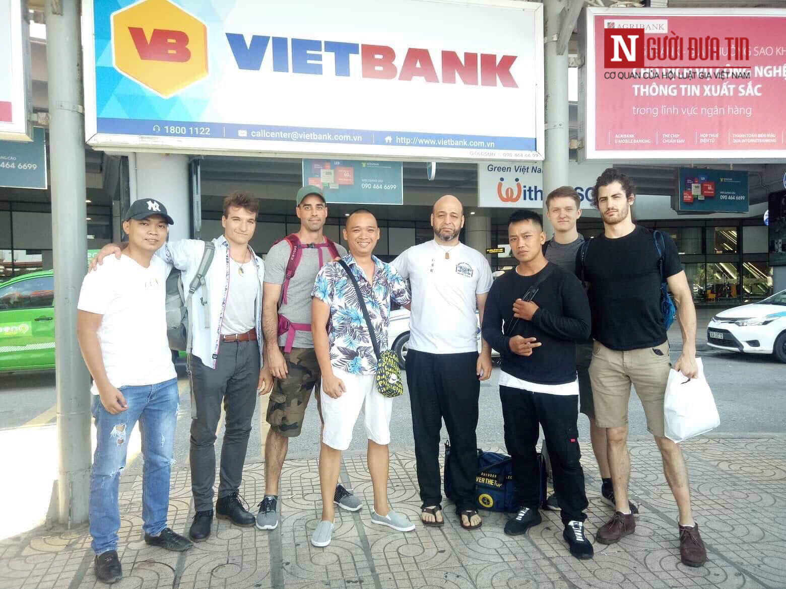 Flores (thứ 4 phải qua) chụp ảnh cùng những người bạn sau khi đặt chân đến Hà Nội.