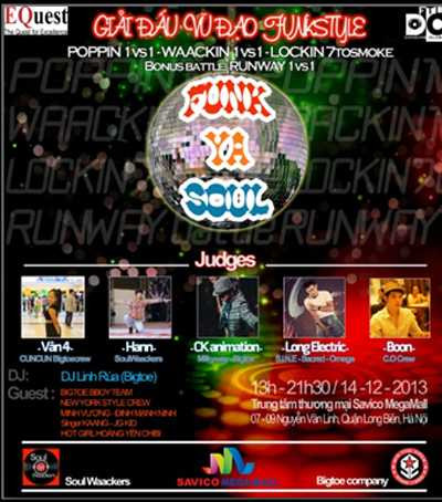Trước dịp giáng sinh năm 2013, nhóm nhảy Big Toe kết hợp cùng nhóm Soul Waackers tổ chức giải thi đấu lần đầu tiên có tại Việt Nam - Funk Ya Soul – một sân chơi mới mẻ và đầy lôi cuốn.Giải đấu sẽ được tổ chức trong không khí vui tươi chào đón Giáng sinh, năm mới và mừng sinh nhật 2 tuổi Savico Megamall.
