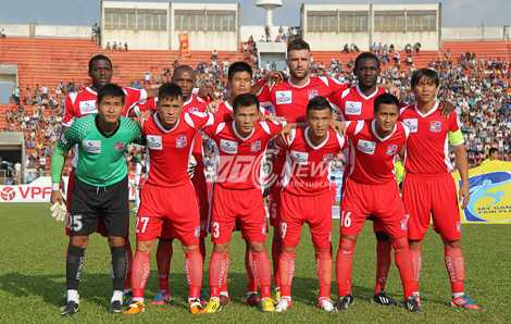 | Lê Hoàng Phát Thierry(hàng sau, thứ 2 từ phải sang) là con bài quan trọng nhất trong đội hìnhĐồng Nai (Ảnh Lê Vinh) |