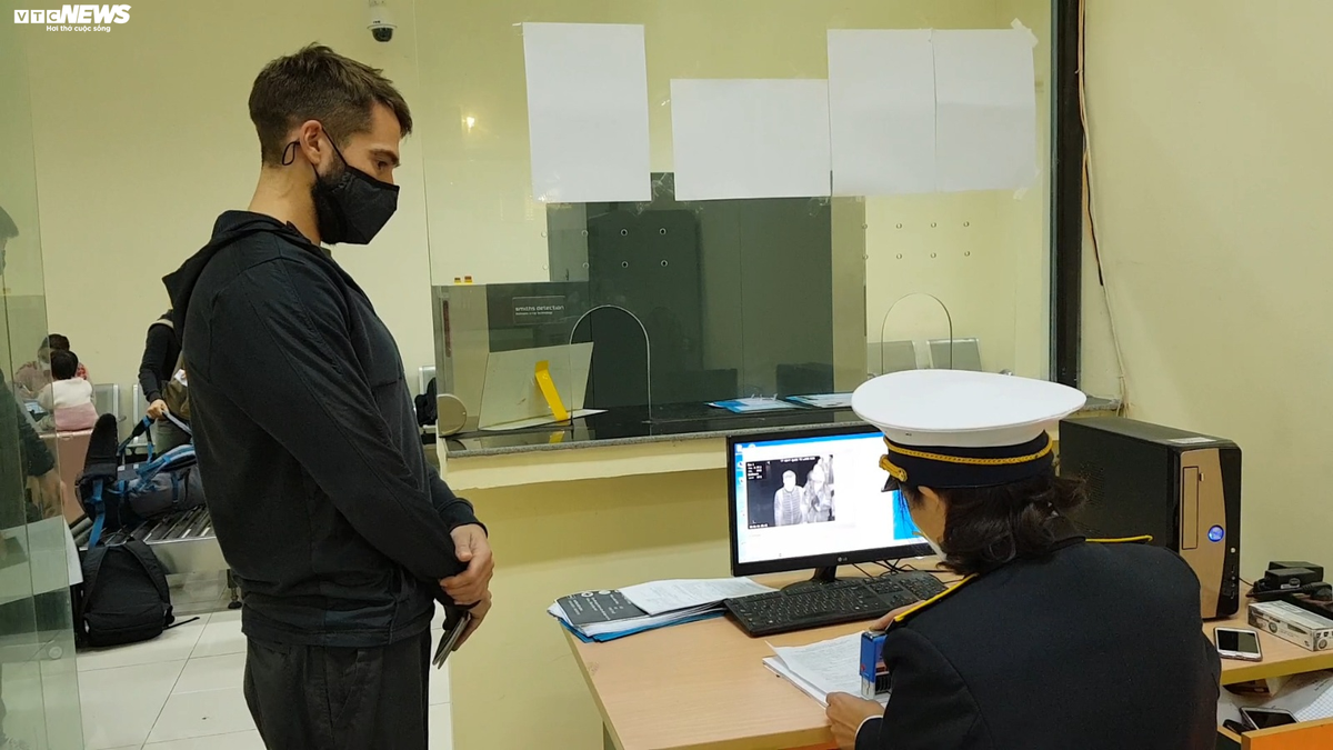 Sau khi làm tờ khai hành trình, hành khách phải đứng ở vị trí để kiểm tra thân nhiệt qua máy soi camera có kết nối máy tính để phân tích có dấu hiệu nghi nhiễm bệnh hay không. Nếu có dấu hiệu nghi ngờ, khách sẽ phải qua khâu kiểm tra thân nhiệt bằng dụng cụ y tế.
