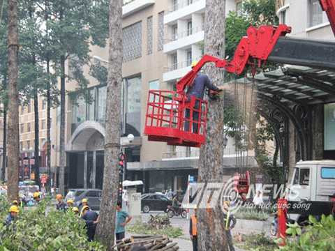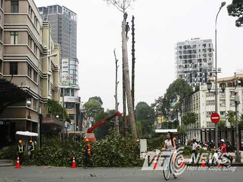 | Hàng loạt cây cổ thụ được đốn hạ |
