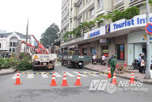 | Sáng nay (22/7) đường Lê Lợi - Nguyễn Huệ (gần nhà hát thành phố) được phong tỏa để chuẩn bị thi công nhà ga ngầm tuyến metro 1 (Bến Thành - Suối Tiên) |