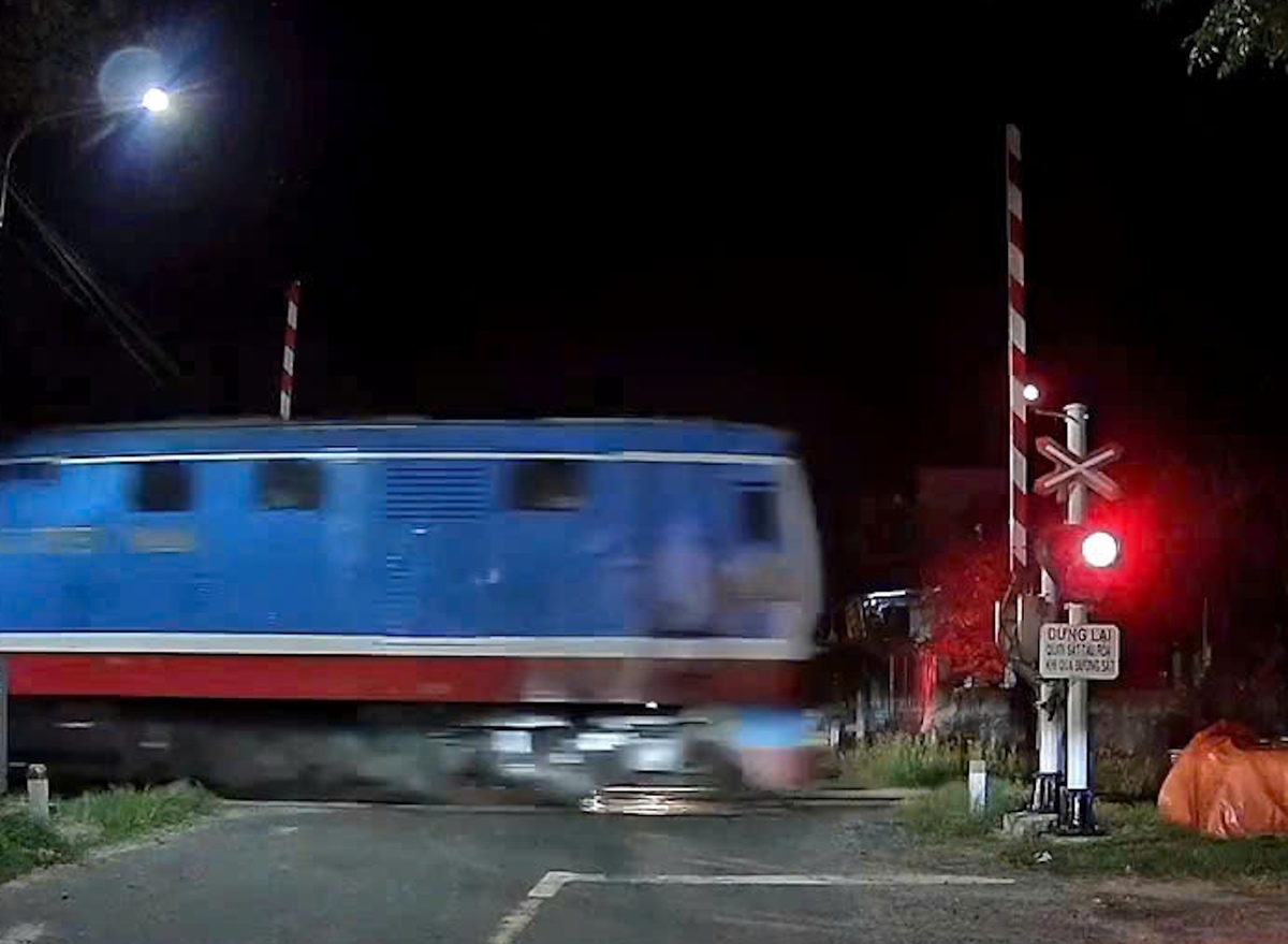 Mạng xã hội Facebook trước đó đăng tải clip ghi lại cảnh người dân đi trên đường bộ đến đoạn giao nhau với đường sắt phải vội vàng dừng xe khi thấy tàu hỏa đang đi đến với tốc độ cao, trong khi gác chắn đường sắt chưa được kéo hết.