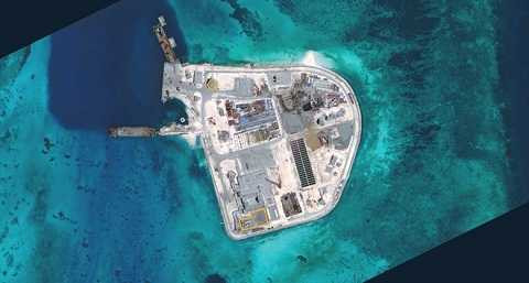 | Đảo nhân tạo Trung Quốc xây trái phép trên Đá Gạc Ma. Ảnh: CSIS |