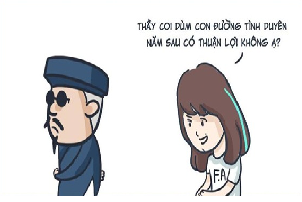 - Cô cứ yên tâm, tôi thấy đường tình duyên sau này của cô thuận lợi lắm, không có tý trắc trở, sóng gió nào.