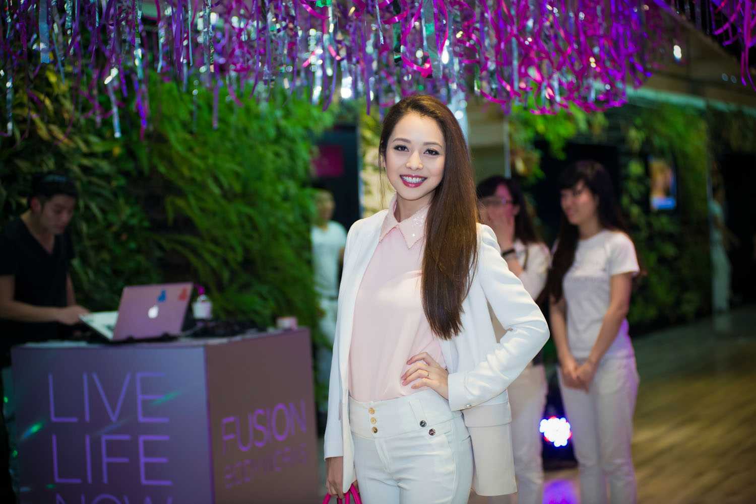 Không còn những bộ váy hút mắt với những đường xẻ táo bạo, nhưng trong Jennifer Phạm vẫn hết sức sành điệu với màu trắng tinh khôi