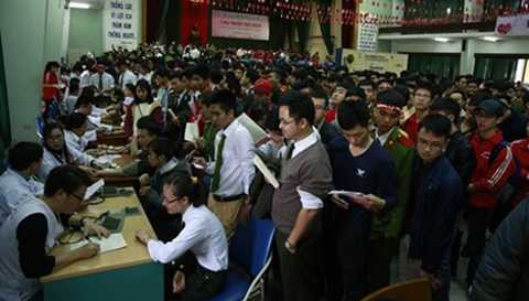 Hàng ngàn bạn thanh niên, sinh viên xếp hàng đăng ký hiến máu trong ngày Chủ nhật Đỏ tổ chức tại trường Đại học Bách khoa Hà Nội. Ảnh: Hồng Vĩnh. |