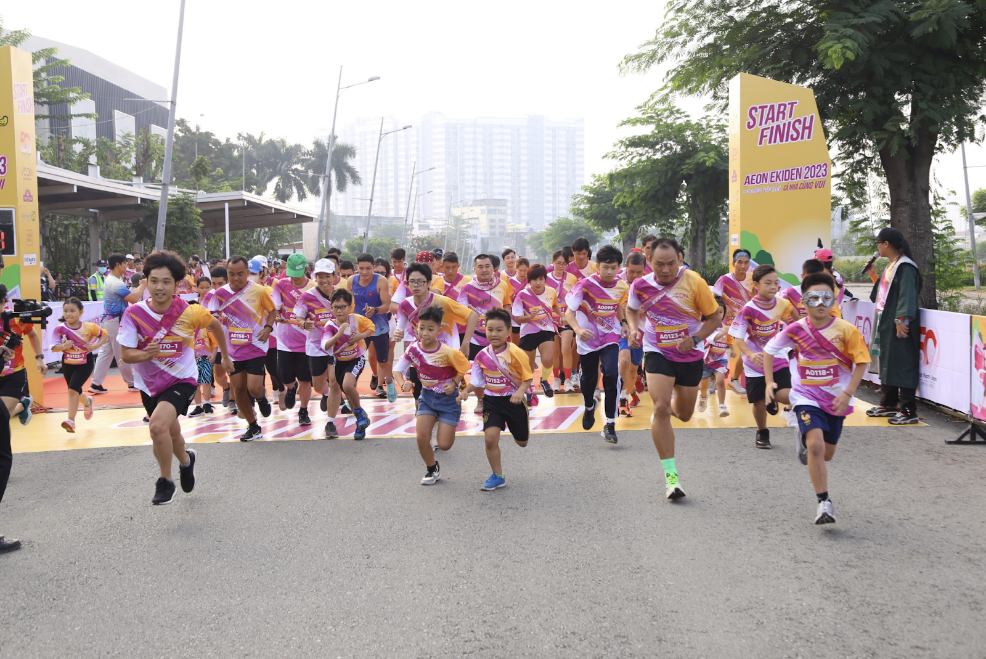 Giải chạy AEON Ekiden thu hút sự tham gia của cả người lớn và trẻ nhỏ.