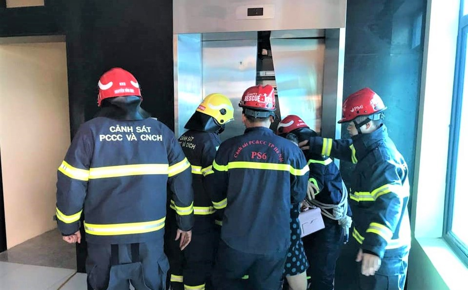 Tại hiện trường, lực lượng PCCC cơ sở mở được một thang và cứu 17 người ra ngoài, còn một thang không mở được, bên trong có nhiều người mắc kẹt. Lúc này, lực lượng cứu hộ dùng kìm banh cắt thủy lực mở cửa thang máy giải cứu an toàn 21 nạn nhân mắc kẹt, không ai bị thương.