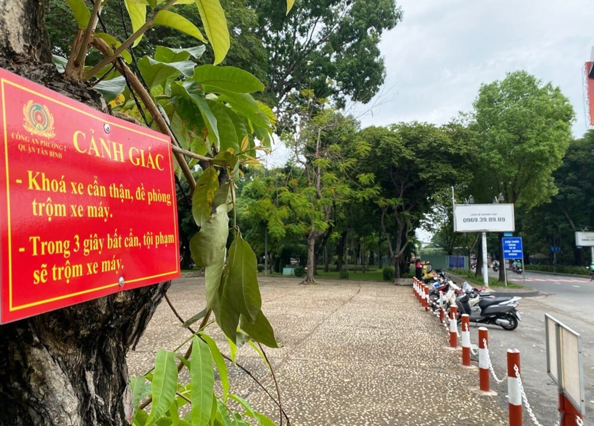 Công viên Hoàng Văn Thụ (quận Tân Bình) được xem là ốc đảo xanh giữa lòng TP.HCM với diện tích khoảng 106.500 m² nhưng lại không có bãi giữ xe. (Ảnh: Lương Ý)