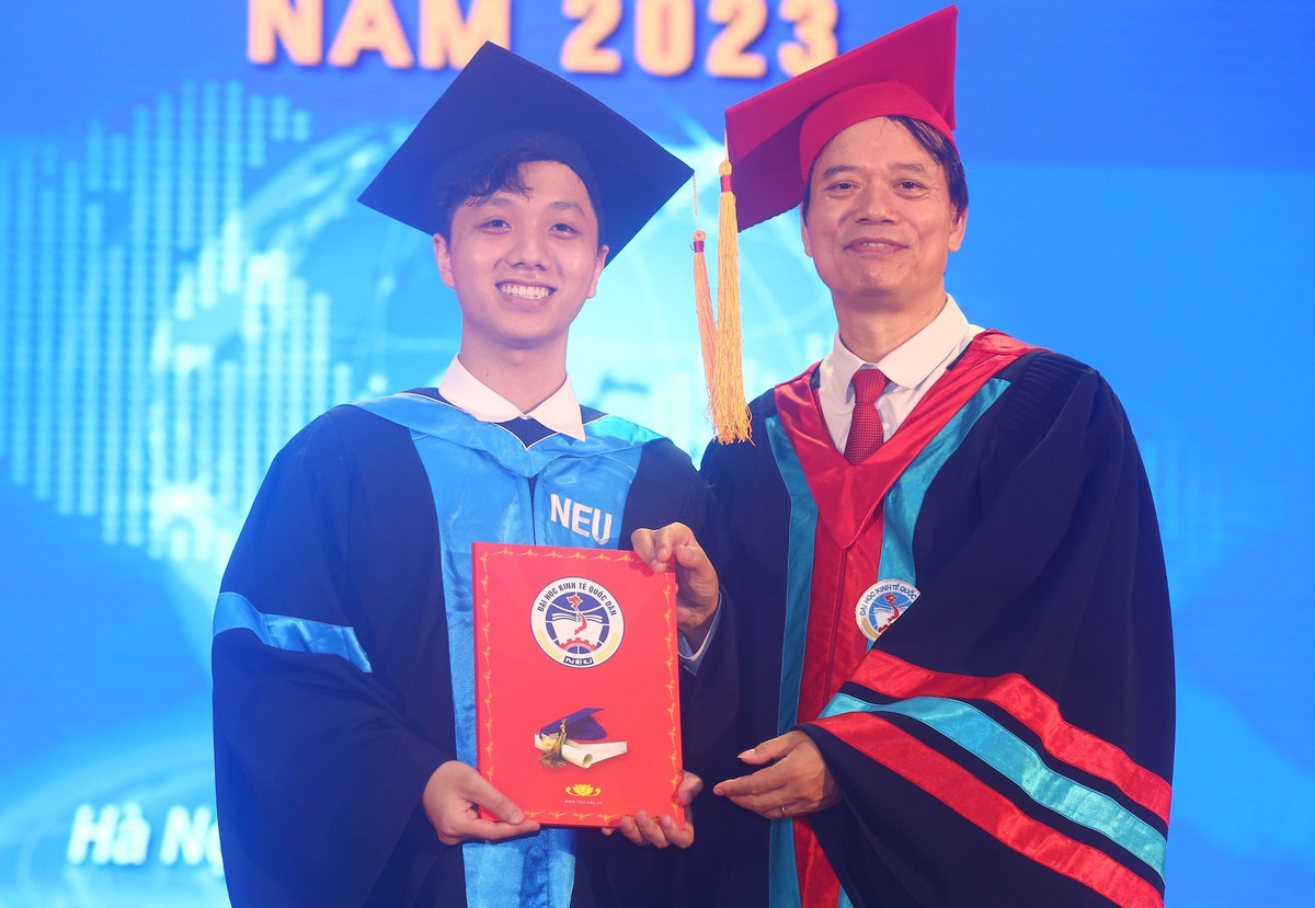 Năm nay, Đại học Kinh tế quốc dân công nhận và trao bằng tốt nghiệp cho 4.577 tân cử nhân. Trong đó, 1.192 em tốt nghiệp loại xuất sắc (chiếm 26,04%), 1.925 em loại giỏi (42,06%), 1.376 sinh viên loại khá (30,06%).