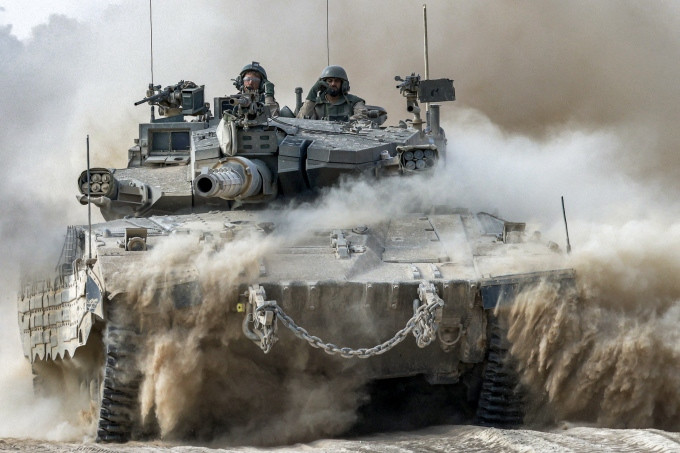 Xe tăng Israel di chuyển gần khu vực biên giới Dải Gaza hồi tháng 7. (Ảnh: AFP)