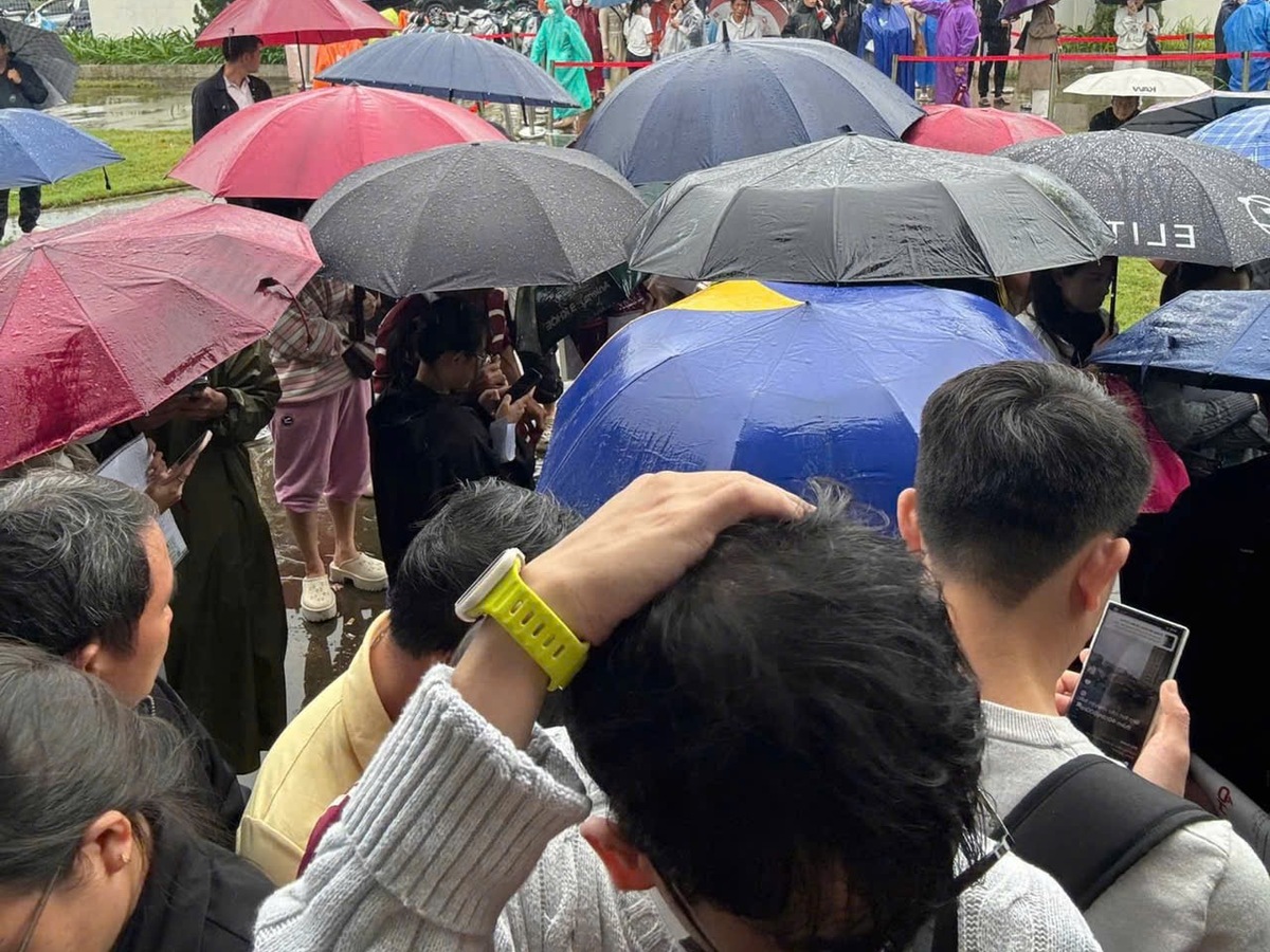 Hàng trăm người đội mưa, xếp hàng chờ bốc thăm.