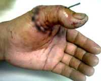 (VTC News) – Do bất cẩn trong lúc chặt cây, con dao đã chặt gần đứt ngón tay trỏ anh S, chỉ còn dính một ít da…