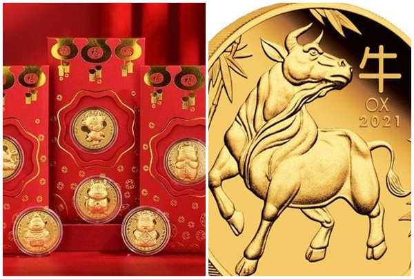 Ngoài phong bao trâu vàng, một số cửa hàng còn rao bán tiền xu hình trâu mạ vàng với giá 150.000 đồng. Đây là đồng xu trong bộ sản phẩm tiền hình trâu lì xì tết 2021 được chính phủ Ausatrlia phát hành nhân dịp năm mới âm lịch của người châu Á.