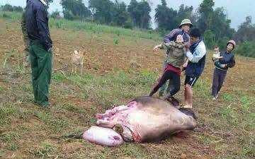 Con trâu sắp đẻ nặng hơn 200kg của một hộ dân ở xã Ngọc Sơn, huyện Lạc Sơn, tỉnh Hòa Bình bị bắt trộm chiều tối hôm qua, sau đó bị xẻ thịt lấy đi toàn bộ phần đùi.