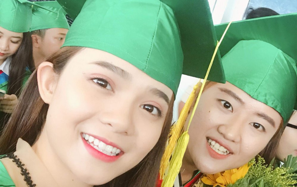 Hình ảnh hiếm hoi hai cô bạn thân chụp chung trong buổi lễ tốt nghiệp.