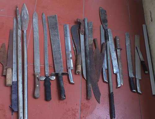 | 25 dao kiếm các loại thu giữ tại hiện trường |