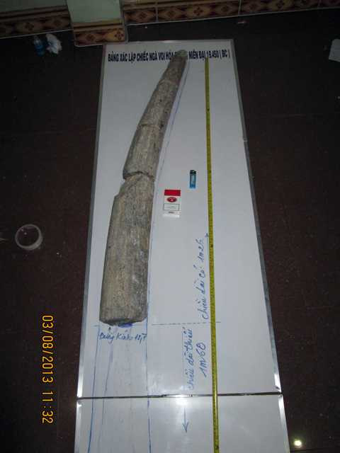 Giám định niên đại theo theo kết quả phân tích C - 14 (Cacbon 14, độ tin cậy 98%) của Viện khảo cổ học Việt Nam thể hiện, chiếc ngà voi hoá thạch do ông Sơn tìm được có niên đại 19.450 năm (trước Công nguyên).