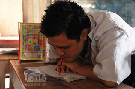 | Thầy kể, ngậm bút sâu quá dễ bị buồn nôn, nhưng ngậm bút cao quá lại viết rất khó vì lực yếu. Nhưng luyện tập một thời gian, thầy đã viết thạo |