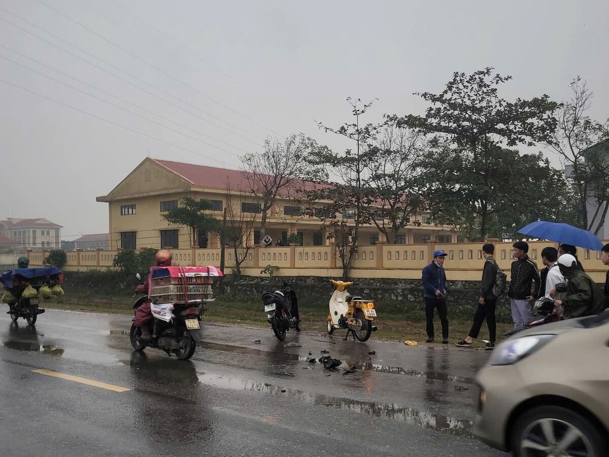 Khi đến gần cổng Trung tâm, 2 xe máy này xảy ra va chạm. Cú va chạm khiến 1 học sinh chết tại chỗ, 2 học sinh còn lại bị thương.