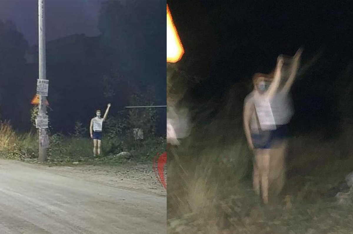 Lái xe có một mình giữa đêm nhìn hình ảnh này bảo sao không giật mình cho được. Bởi có ai lại ăn mặc mát mẻ xong đứng vẫy tay giữa đồng không mông quạnh như vậy? Đối với người yếu tim, đây chắc chắn là hình ảnh không hề thân thiện chút nào.
