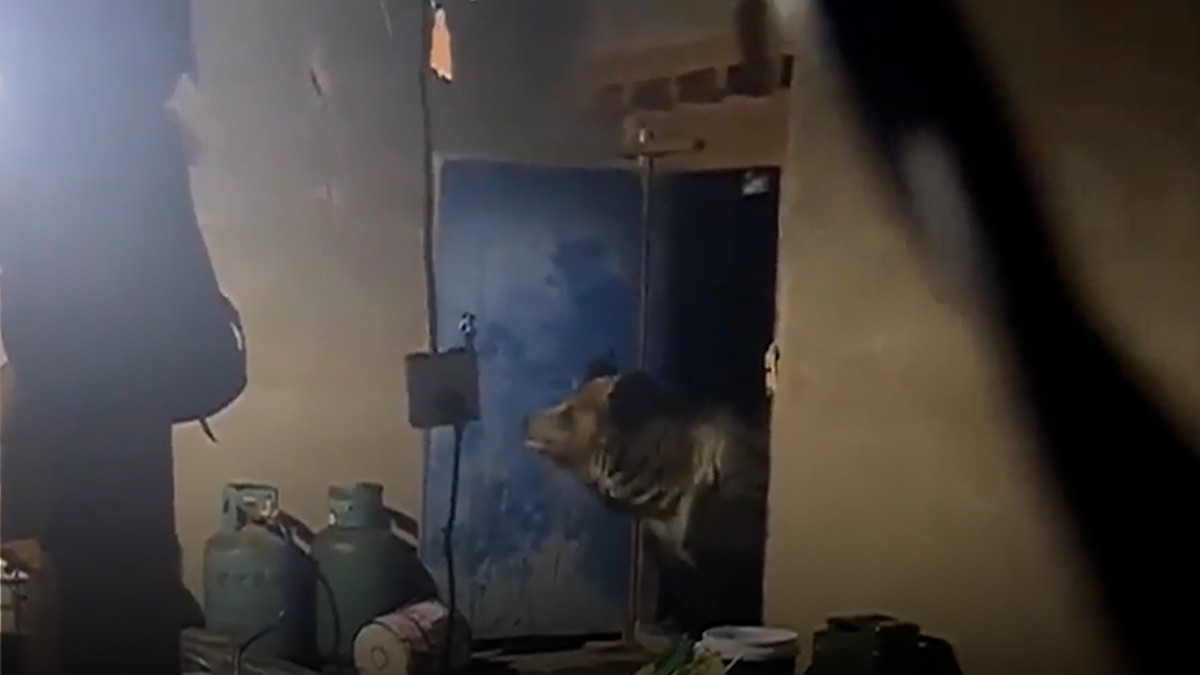 Gấu hoang xông vào nhà kho tìm thức ăn
