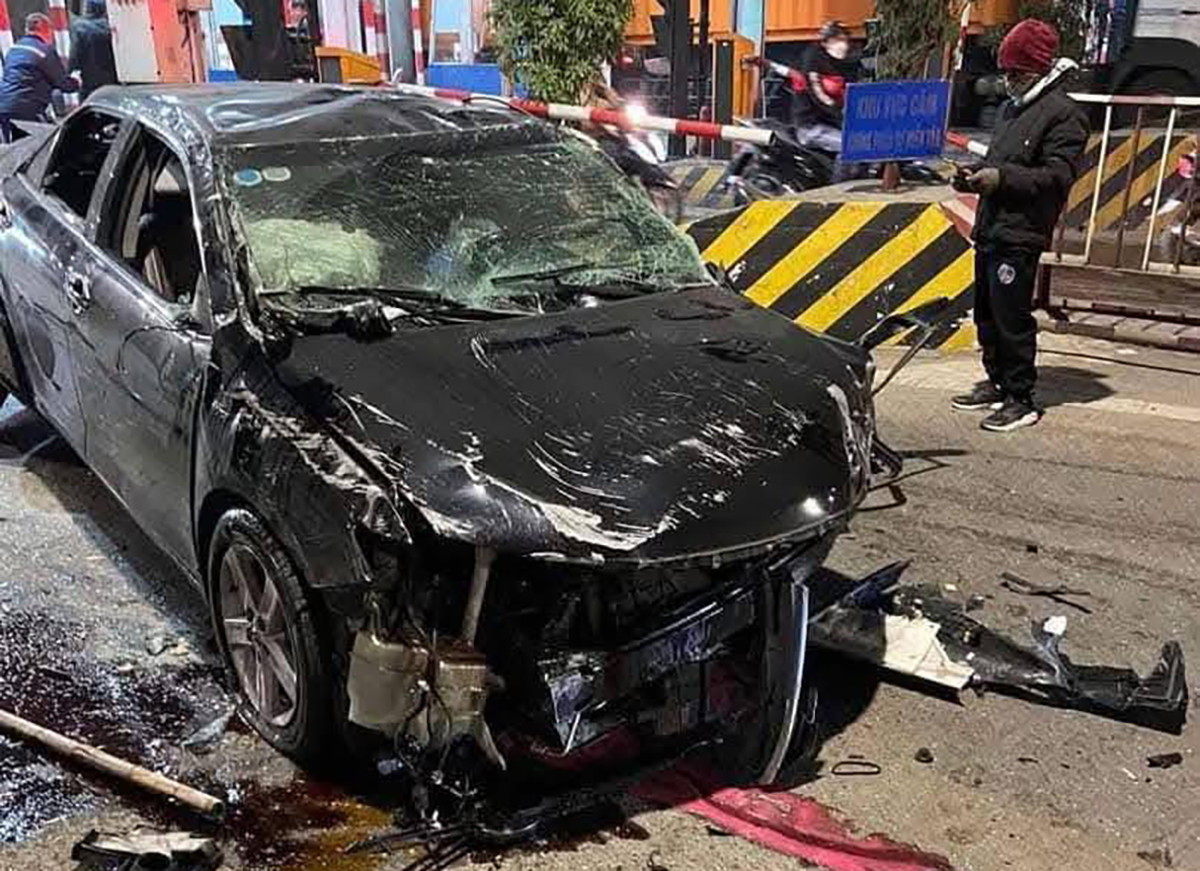 Sau khi gây ra 2 vụ va chạm, ô tô đâm vào trạm thu phí mới chịu dừng lại.