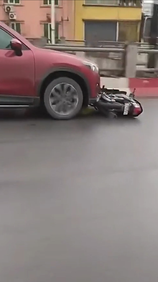 Gây tai nạn rồi bỏ chạy, tài xế ô tô còn kéo lê xe máy trên đoạn đường dài
