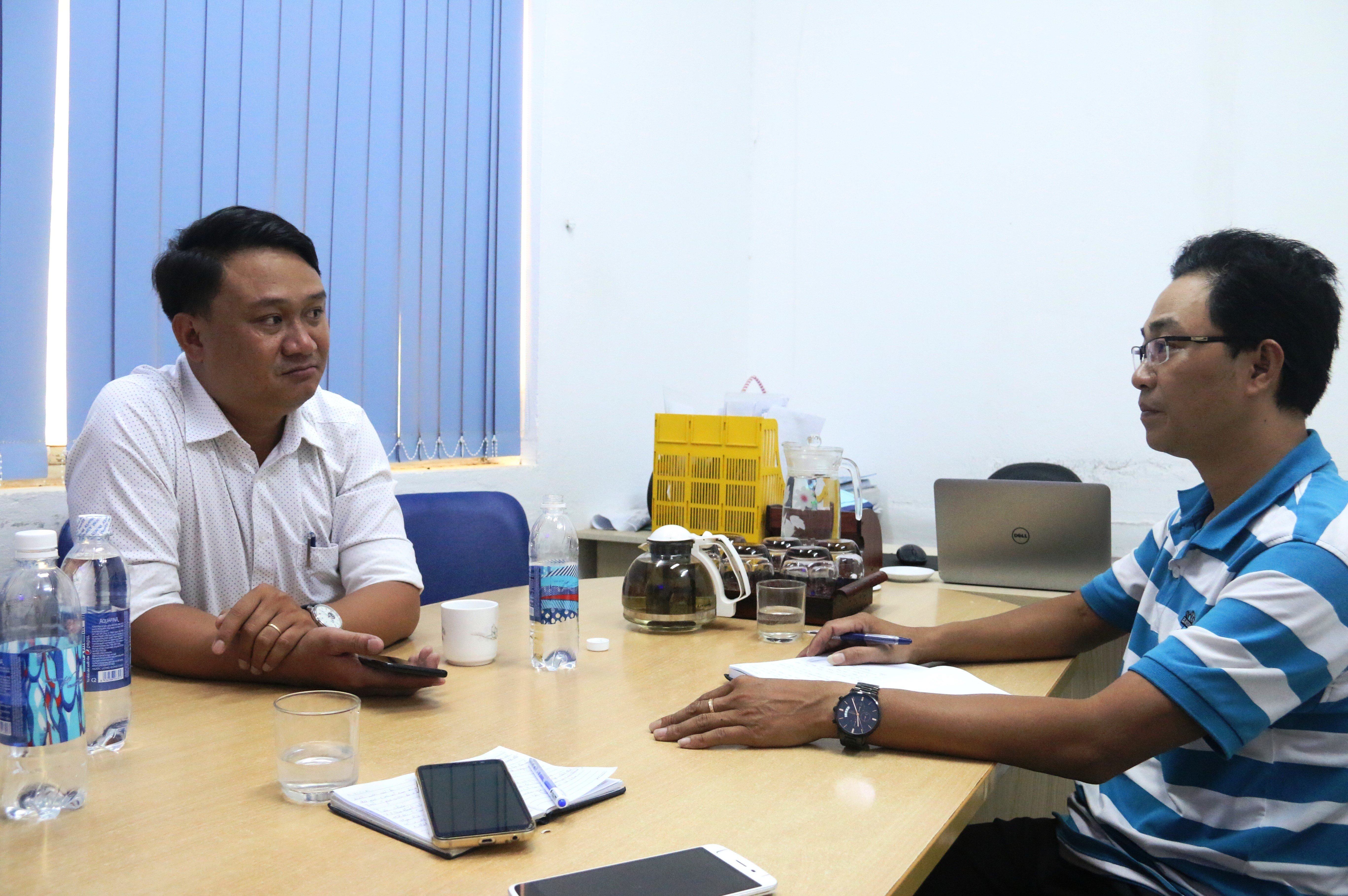 Ông Nguyễn Đăng Huy (trái) tại buổi làm việc sáng 16/10.