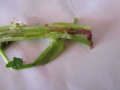 Hình ảnh mà người này chia sẻ khiến nhiều bà nội trợ ghê sợ. Trong thân rau cải xoong, có cả ổ sinh vật lạ đo đỏ nằm ngọ nguậy.