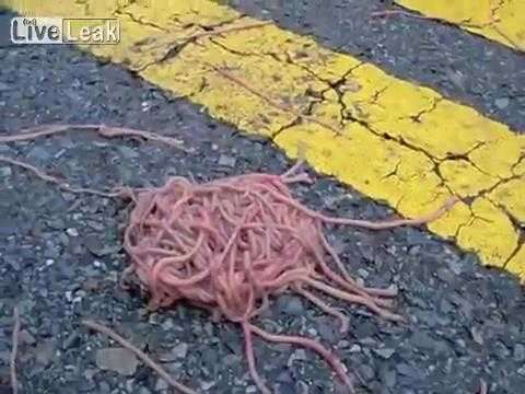 Sau một trận lũ lụt, người dân bang Texas, Mỹ đã chứng kiến cảnh tượng vô cùng kỳ lạ, hàng ngàn con giun cuốn thành từng ổ lúc nhúc dọc theo con đường thuộc côn