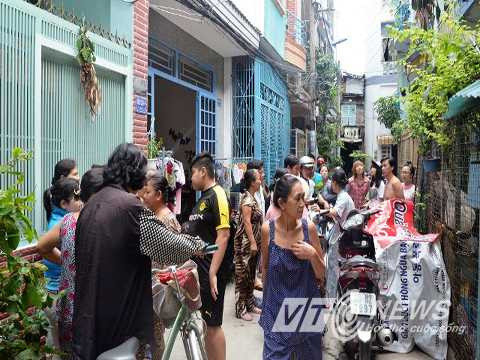 | Người dân hiếu kỳ tụ tập rất đông khi thi thể nạn nhân được chuyển về nhà tại quận 10, TP.HCM |