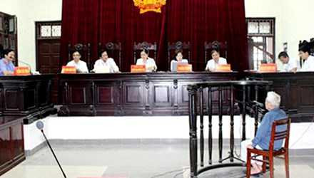 | Bị cáo được cho ngồi trong cả phiên xét xử vì thể trạng quá yếu |